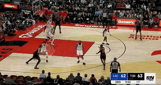 比赛第三节,哈登和乔丹-米勒下半场接连命中三分,快船完成本场首次领先。