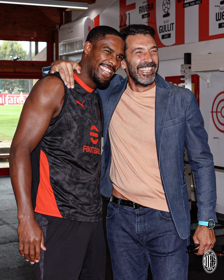 米兰官方社媒晒出加图索与阿莱格里的合照,以及布冯与迈尼昂的合照,配文:“欢迎加图索和他的教练团队造访米兰内洛。”